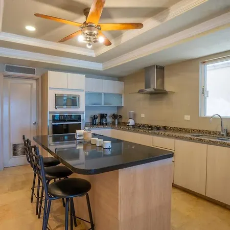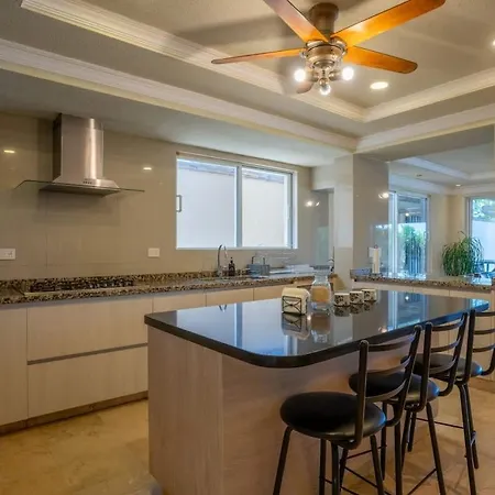 Also, this 6-bathroom villa is a mere 1.8 km from the night Coco Bongo Club and 2.3 km from Playa Langosta Public Beach.